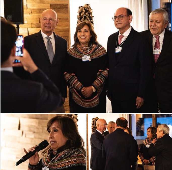 UNA EX TERRORISTA DE LA ORGANIZACIÓN «SENDERO LUMINOSO» AQUI EN UNA «SIMPÁTICA» INSTANTÁNEA CON KLAUS SCHWAB SU AMO Y SEÑIR ,Y AUTÉNTICO MUÑIDOR DEL «GOLPE» PARA COLOCAR EN LA PRESIDENCIA PERUANA A UNA LACAYA AÚN MÁS SERVIL QUE EL PRESIDENTE ANTERIOR.